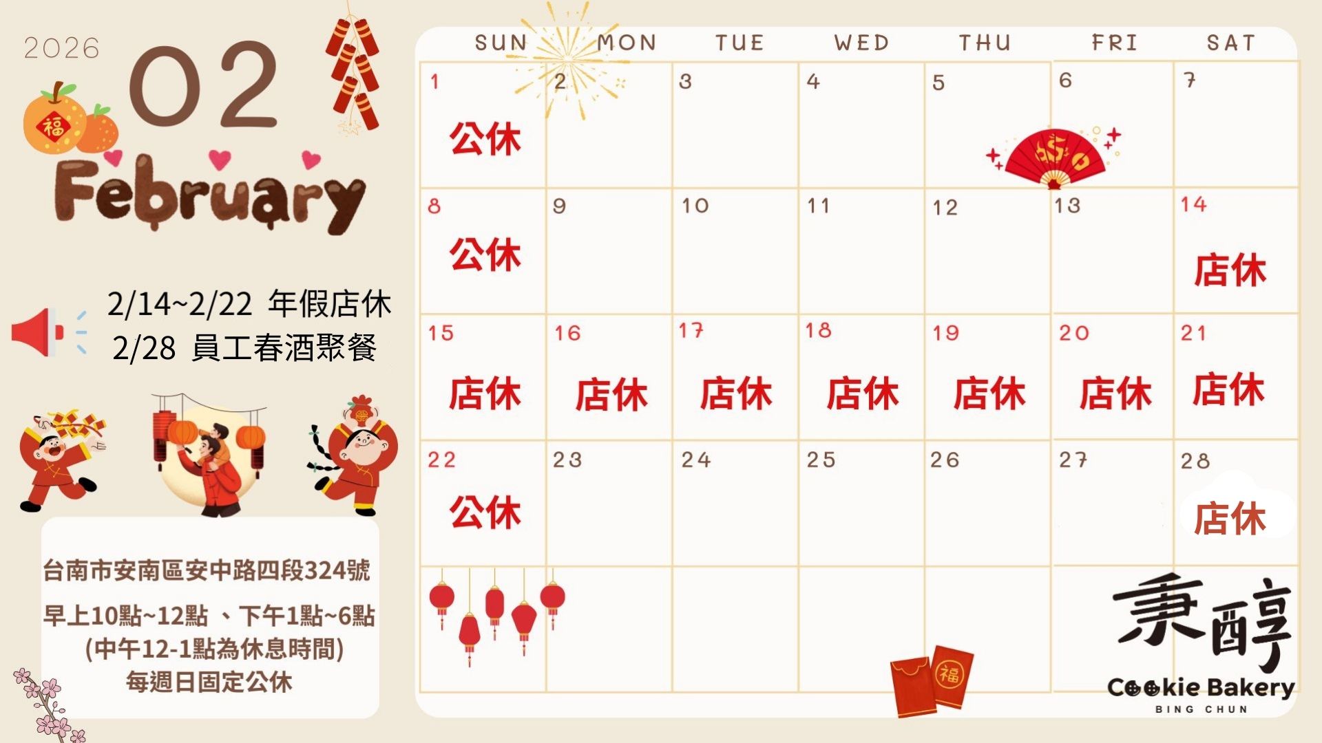 【春節服務調整】 1.春節前 宅配 → 最晚出貨日至 2026/02/06 《 2月份起因近農曆春節