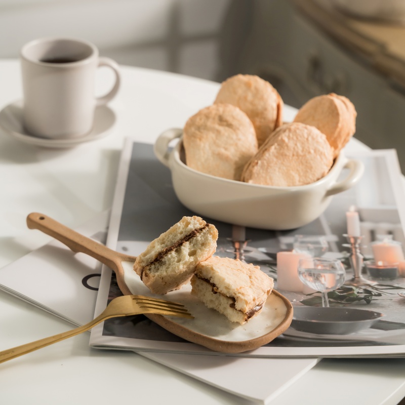 成 份:進口奶油、低筋麵粉、糖粉、雞蛋白、杏仁粉、榛果巧克力。