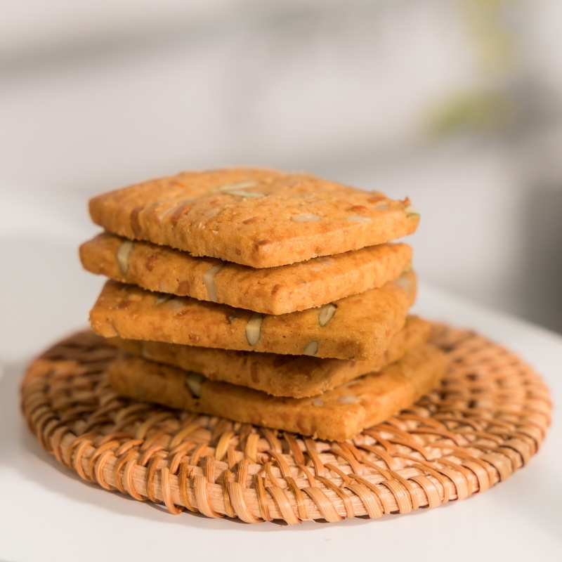 以鹹香起司拌合大量堅果,微鹹微甜的餅乾更佳討喜,獨家特製配方,呈現有別於他人的不同口感。
